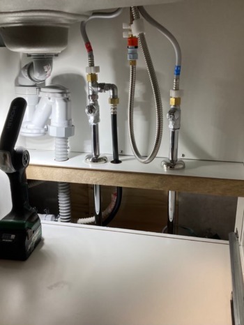 シンク下の配管工事もしっかり丁寧に。