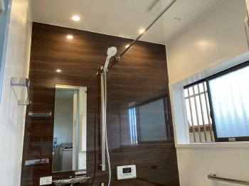 アクセントパネルを濃ゆ目の木目調にされ、より落ち着いた浴室空間になりました