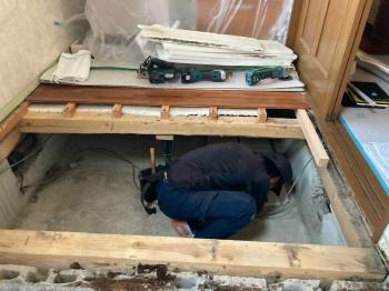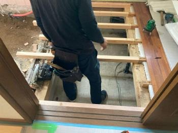 浴室入り口の脱衣場床の木材も腐食しておりました