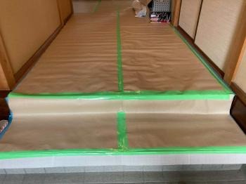 工事前にはしっかり養生し、廊下に傷がつかないようにします