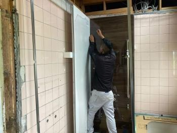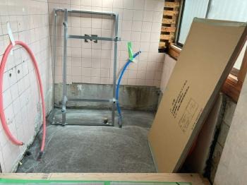 脱衣場との段差もあり、段差の無い浴室への移動をご希望でした