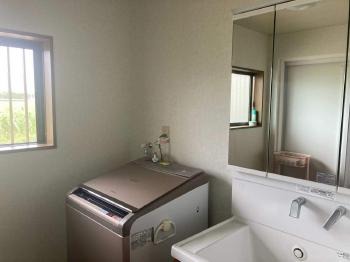 洗濯機・洗面化粧台も傷や汚れが付かないように養生します