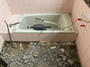 床タイルも一部亀裂が入っており、水漏れ等も心配されていらっしゃいました