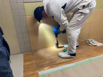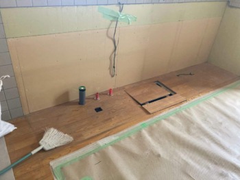 壁面はキッチンパネルになる為、タイル壁を解体ます