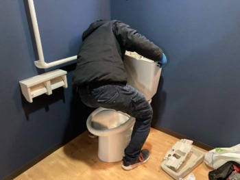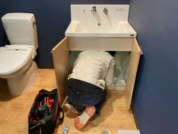 便器・洗面化粧台は、再設置前に綺麗に磨きます