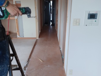 今回の工事で廊下を含む全ての床を張り直します