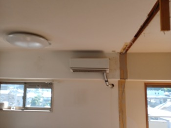 LDK⇔和室の間仕切壁を撤去してエアコンを取り外します