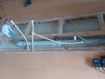 システムキッチン変更に伴う給水給湯・排水移設作業を行います