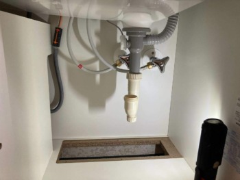 排水管を取り付け、水漏れチェックをします