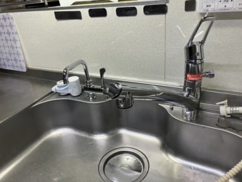 こちらは浄水器設置用水栓金具です! 既存の後付け浄水器が設置できるよう口径に配慮し水栓金具を選定いたしました。