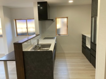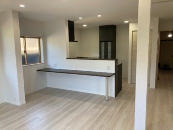 カウンターを設置して、キッチンの前に座ってちょっとした団らんも・・・