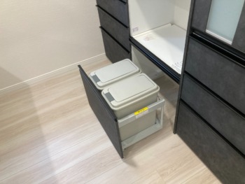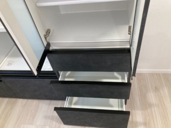 レンジを置いたり炊飯器を置いたりするキャビネット付き。