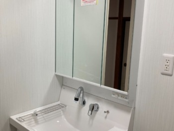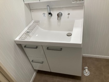 洗面化粧台もリクシルです。ピアラ です。LED照明がスッキリとしていて明るいです!