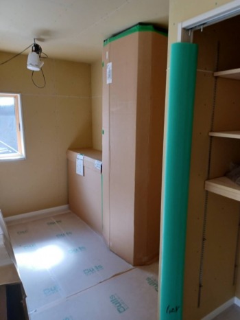 洗面脱衣空間も変りました。入口まわりのクロスも素敵です!