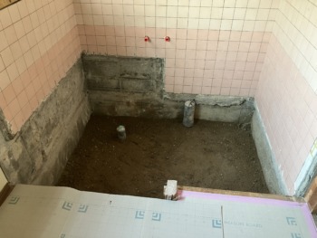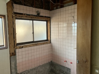 在来浴室を解体していきます。浴槽を撤去し・脱衣場との間仕切り壁や床も天井も撤去します。