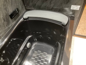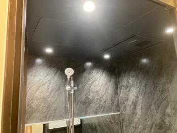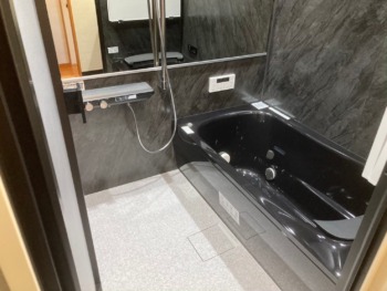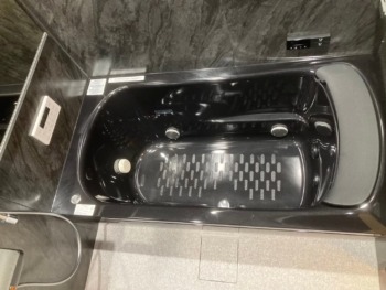 ブラックを基調にした浴室は「TOTO シンラ」です