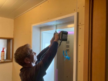 浴室の扉を付けます