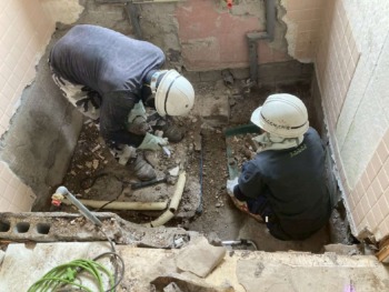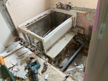 既存の浴室を解体、撤去です