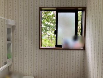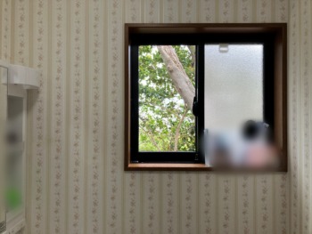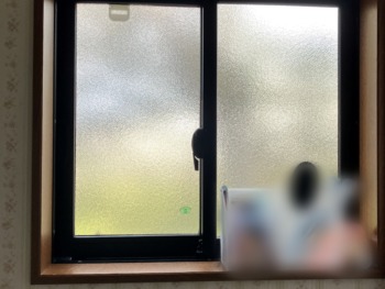 脱衣場の窓です。既存のすりガラスを片面だけクリアガラスへ交換します