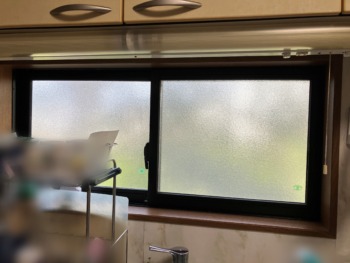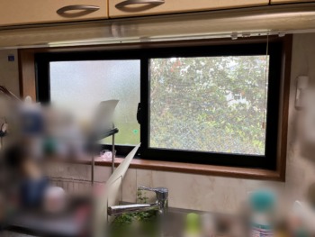 キッチンの窓です。既存のすりガラスを片面だけクリアガラスへ交換します