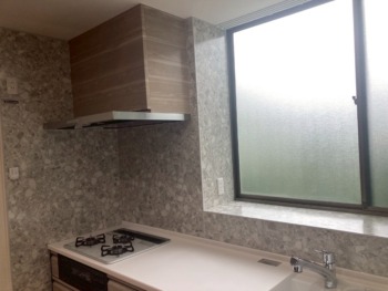 壁にキッチンパネルを貼ります。