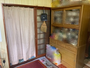 廊下に続く、ガラス戸も交換します。