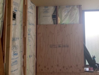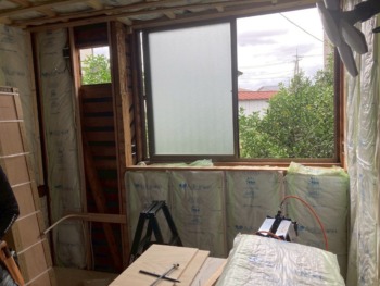 壁に断熱材を入れます。