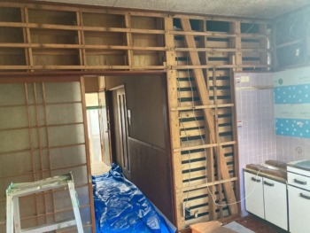壁・キッチン・換気扇の撤去後です。