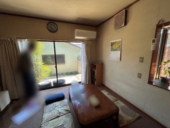 大きな掃き出し窓。こちらも単板ガラスの為、外気が直接部屋に伝わりやすくなっていました。