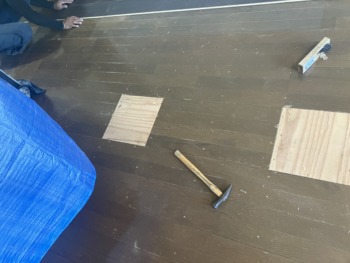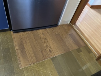 床も痛んでた部分を一部補修しました。今回は下地は痛んでいませんでしたので上張りを一部補修しました。