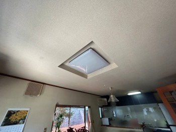照明も交換や撤去がありますので、既存の器具の跡も出てしまいます。天井もクロスを張替え綺麗に補修します。