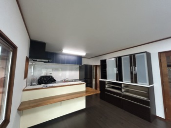 3つあった照明を1つ撤去し天井がスッキリしました。既存のキッチンも紺色でしたので新しい内装との相性バッチリでした!