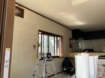 白い壁紙が経年劣化により少し変色していました。