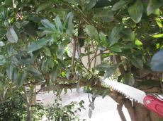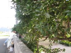 フェンス設置前に、設置面にかかる植木の枝を伐採します。