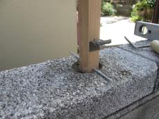 ブロック塀に、支柱設置用の穴をあけます。