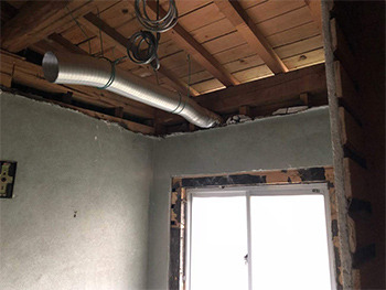 システムバスと一体になっておりますフリーサイズ窓枠を既存の窓と連結させます。