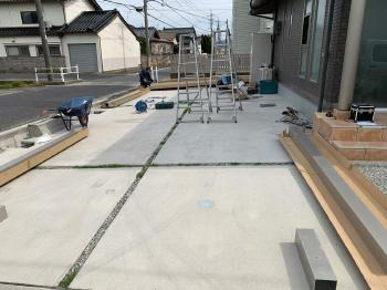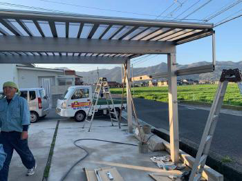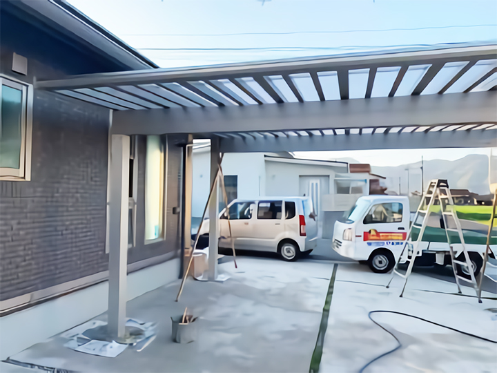 施工後の様子です。大きなカーポートが取り付けられて、これで車の乗り降りも楽になりました。
