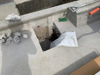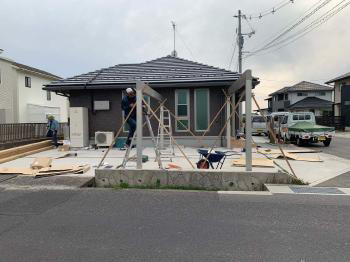 カーポート設置の位置を決め、柱埋め込み用の穴を掘って行きます。