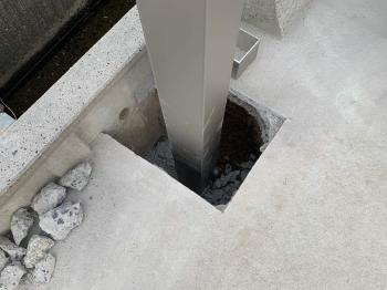 柱を埋め込み柱が垂直になるよう調整をかけます。