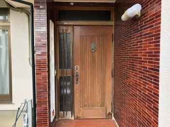 既存玄関ドアは木製です