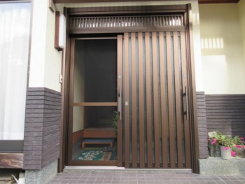 | お客様のご要望 | ガラス面が多い玄関サッシで防犯面と断熱面で若干の不安があるので何とかしたい・・というご要望でした |