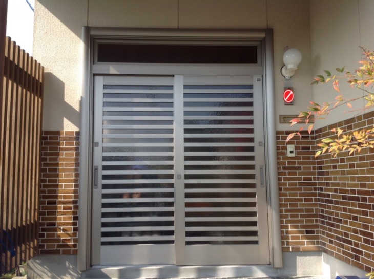 ガラス面の多い玄関引き戸でした