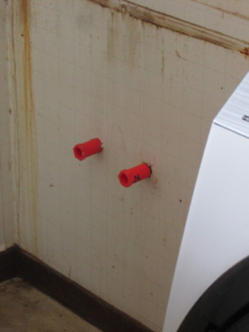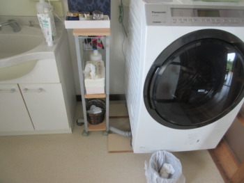 <施工前 洗濯機> 洗濯機用の排水口が洗面台のすぐ横にあり、洗面台の取り換えに悩んでいらっしゃいました。