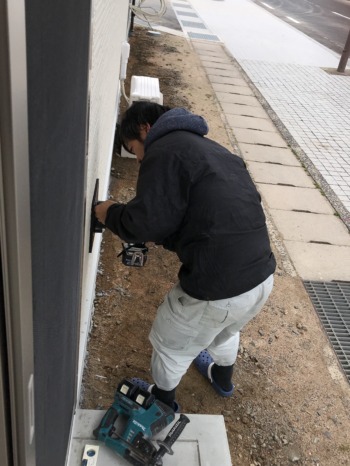 外壁側にも枠を取り付けます。