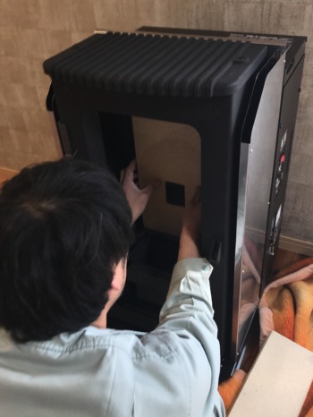 ペレットストーブ・取り付け部品を設置部屋まで搬入させていただきます。