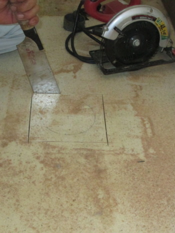最小限に床をカットし洗濯排水口を移設