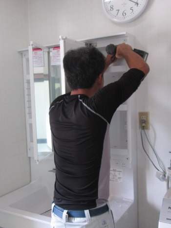 新規洗面台組立中