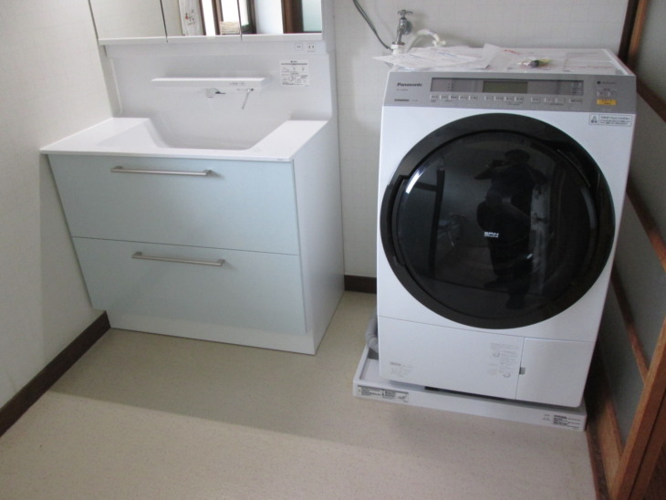 | 使用商材 | ・洗面台:TOTOオクターブW900 ・洗濯パン:TOTO PWP740NW |