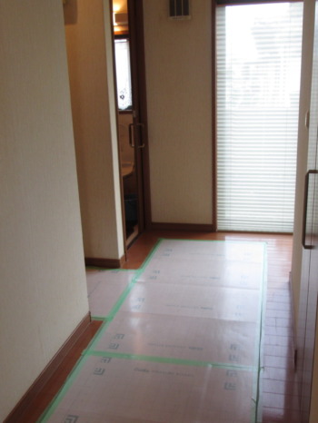床張替完了!木目調で感じのいい模様です 後はトイレ設置