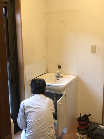 給排水管を外し、化粧台を取り外します